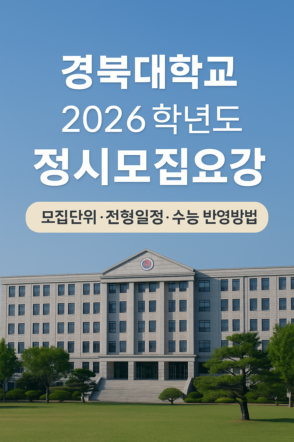 2026학년도 경북대학교 정시모집요강을 확인하세요. 전형일정, 모집단위 및 모집인원, 수능 반영 방법, 실기·면접 안내까지 한눈에 정리했습니다. 수험생과 학부모라면 꼭 확인해야 할 최신 정보입니다.
